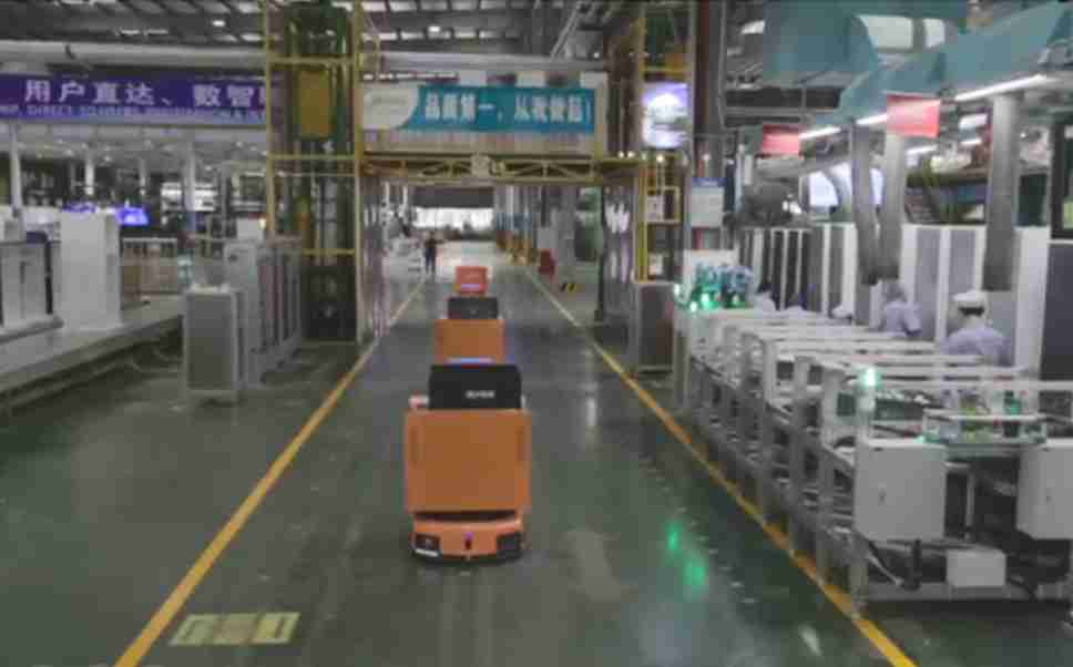 为车载冰箱物流配送打造的智能解决方案,,包含产中物流通过潜伏举升AMR搬运至线边,,产后成品物流智能仓储,,,,流程包含产中物流智能齐套入库,,线边安灯叫料AMR智能配送至线边,,成品入库、、、出库,,通过无人堆高车机器人,,,智能仓储管理替代人工作业管理,,,实现更高存储、、、更高效率、、、、更具柔性化的解决方案。。